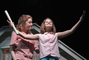 "Imagine that your baby sister has just died and you are immediately shipped off to an aunt who hasn’t the foggiest idea about how to console, show love to or please a child. That’s the fate of Willa Jo...and Little Sister...in the poignant and heartwarming Getting Near to Baby...Rita Giomi’s gifted cast gives full measure to...Y York’s fine stage adaptation of Audrey Couloumbis’ Newbery Honor book. The girls’ snobby Aunt Patty seems not to have a clue. For her, rules and cleanliness are far more important than compassion. She disdains the polite neighbor children, Liz ...and Isaac...because, with 14 people living in their house, they must be trash. Yet despite Aunt Patty, these kids manage to befriend the sisters and introduce them to the wonders of their playhouse/cave. Aunt Patty would prefer the sisters to take charm lessons from the superficial, social-climbing Lucy Wainwright and her mean-spirited daughter Cynthia...Of course, there are lessons in this play. True values are those that involve respect for other people, and revere good character rather than airs or social status. And much to the delight of the young people in the audience, the play makes it clear that children sometimes do indeed know more than the adults in their lives — and they have their own way of working through life’s tragedies. Aunt Patty has a lot to learn about children and about values...Buried under that exterior there is someone who is capable of love, someone who also mourns the baby..."